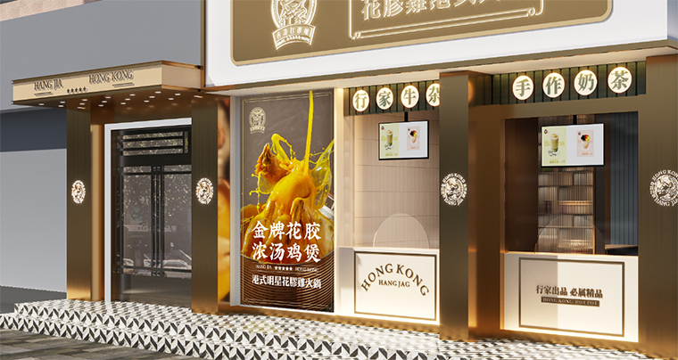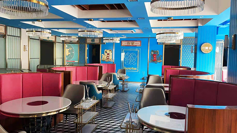 行家花膠雞港式打邊爐餐廳在顏色設(shè)計(jì)上結(jié)合品牌色,大面積使用不銹鋼金色,藍(lán)綠色,暗紅色,將餐廳打造成主題風(fēng)格截然不同的港式餐廳,同時(shí)融入具有地域風(fēng)情的港式風(fēng)味,在文化元素上植入恭喜發(fā)財(cái),順、發(fā)、喜等傳統(tǒng)香港吉祥話語元素,傳統(tǒng)與現(xiàn)代的元素融合在餐飲空間中,突破了人們對(duì)傳統(tǒng)港式餐廳的認(rèn)知,重新定義新派港式打邊爐餐廳的基調(diào)。