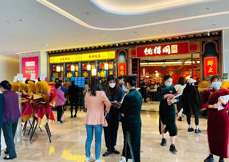 品深服務的悅得閑茶樓:咨客小哥穿民國長衫、咨客小姐姐是民國旗袍,打扮成老廣州的東山少爺、西關小姐姐的形象,非常吸眼球;咨客臺也是專門設計的西關古建筑造型,符合品牌調性,和門店的整個裝飾風格一致;顧客等候區,設置成嶺南建筑園林風格,讓路過的顧客對進店充滿期待。客家菜代表客語,門店的咨客接待區和顧客等候區就專門設置了符合品牌特色的咨客臺,茶水桌,等候用餐的餐椅,與整個門店完美匹配,令顧客感動。