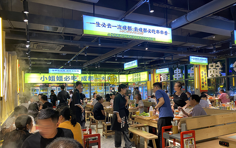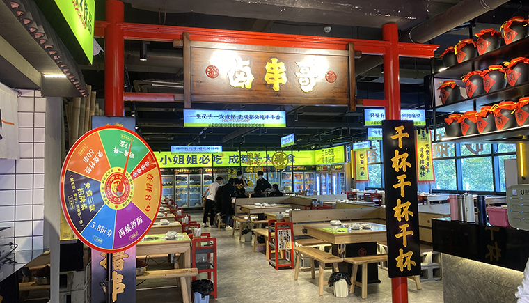 品種多樣、地道好吃、熱鬧好耍”為市場定位,以顧客自選模式,100多種串串菜品,幾十種四川特色小吃,四川特色燒鹵味,精致甜品,酒水飲料,應有盡有,想吃什么拿什么。