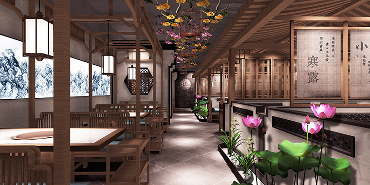 讓人仿佛置身江南的自然天地之間用餐,清新淡雅,心曠神怡!整個效果極為雅致,在整個商場中吸睛效果最好,門店運營業績優良,坪效長期名列前茅