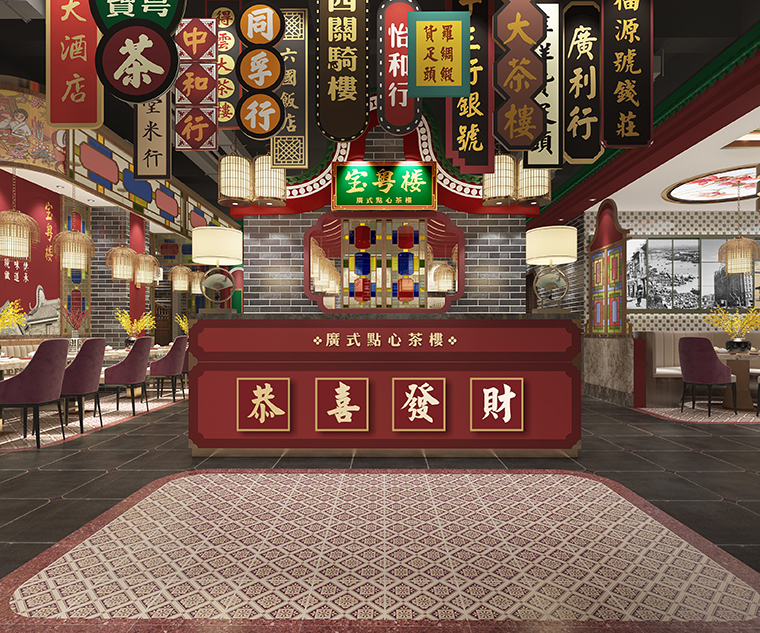 上海寶粵樓廣式茶點(diǎn)全天茶市餐飲空間裝飾裝修設(shè)計(jì)軟裝陳列設(shè)計(jì)