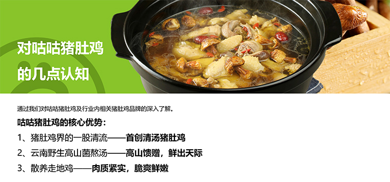 而我們的咕咕豬肚雞是采用野山菌清湯熬制,菜品最大的特點就是和傳統奶白色濃湯不同,我們的雞湯很清透,因為使用的是云貴高原的野山菌熬制,不加任何添加劑,健康養生。